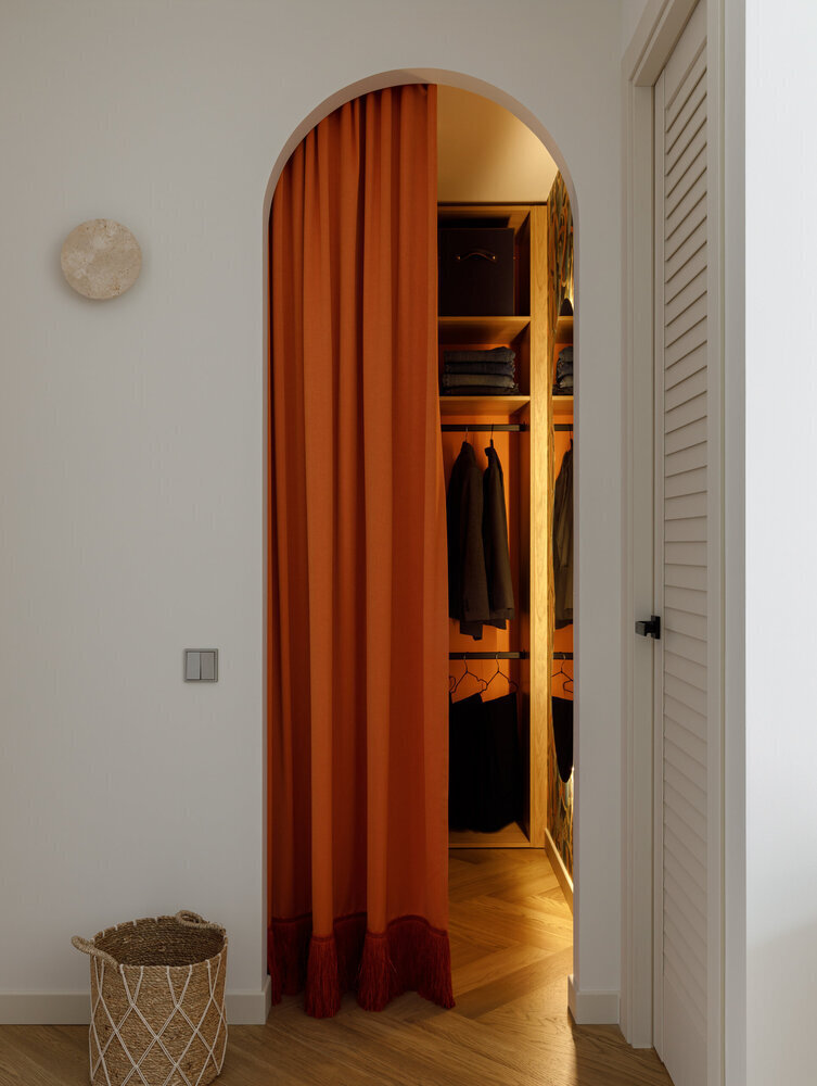 Фотография: Гардеробная в стиле Современный, Малогабаритная квартира, Квартира, Проект дня, 1 комната, до 40 метров, Лина Князева, современный с элементами скандинавского – фото на INMYROOM