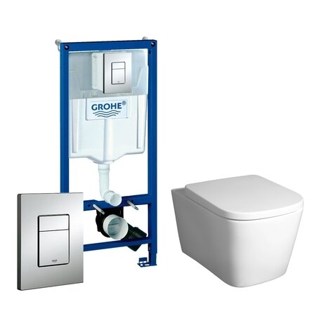 Ищете готовое решение для ремонта санузла? Комплект Grohe включает инсталляцию, подвесной унитаз и хромированную кнопку — всё для установки за один день. Экономит до 50% воды благодаря двухрежимному смыву 3/6 литров. Три главных преимущества: - Безободковая чаша — легче мыть, нет скрытых мест для бактерий - Система «антивсплеск» — комфортное использование без брызг - Микролифт сиденья из дюропласта — плавно опускается, не хлопает, служит годами без царапин Подходит для санузлов площадью от 4 м². Габариты инсталляции: 113×50×23 см (высота×ширина×глубина монтажа) — встраивается в стандартную перегородку толщиной от 25 см. Унитаз выступает от стены на 49,5 см, ширина чаши — 36,5 см. Идеален для квартир, загородных домов и коммерческих помещений. Подходит семьям с детьми — сиденье не падает, кнопка расположена удобно для любого роста. Пневматическое управление — нажимаете кнопку, воздух передает сигнал механизму. Работает тихо, не требует электричества. Три режима слива: полный (6 л), экономный (3 л) и старт-стоп — прерываете смыв в любой момент. Душевой слив — вода подается равномерно по всей чаше, смывает с первого раза. Горизонтальный выпуск — подключается к стандартной канализации в стене. Подвод воды возможен сбоку или сзади бачка — выбираете удобный вариант при монтаже. Монтаж в пол или капитальную стену — выдерживает нагрузку до 400 кг. Межосевое расстояние под крепежные шпильки: 18 см (стандарт для всех подвесных унитазов). Фаянс высокого обжига — глазурованная поверхность не впитывает грязь и запахи. Белый цвет не желтеет со временем. Дизайн в стиле hi-tech — строгие линии, минимализм, сочетается с современной плиткой и мебелью. Гарантия 10 лет от производителя. Сборка не требуется — получаете готовый комплект, монтируете сразу. Вес 43 кг — устанавливают два человека за 3-4 часа.Отзывы