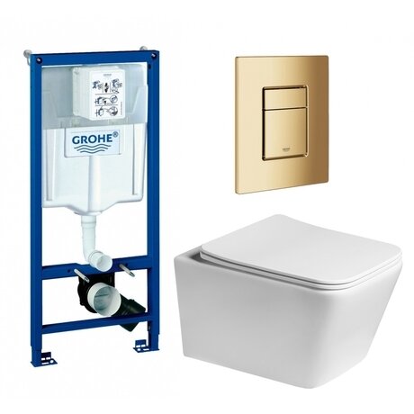 Нужно установить подвесной унитаз, но не хочется искать комплектующие по отдельности? Этот набор от Grohe включает инсталляцию, чашу и кнопку смыва — монтируете сразу готовую систему. Экономите время на подборе деталей и получаете 5 лет гарантии на всю конструкцию. Три главных преимущества: - Безободковая чаша с антивсплеском — вода омывает всю поверхность без застойных зон, не образуются брызги при смыве - Сиденье с микролифтом и быстрым съемом — крышка опускается бесшумно, снимается одним движением для уборки - Пневматическая кнопка в золотом цвете — работает без электричества, добавляет акцент в интерьере Подходит для ванных комнат от 4 м². Инсталляция монтируется в капитальную стену или пол на глубину 23 см, общая высота конструкции — 113 см. Чаша крепится на высоте 36 см от пола — удобно для взрослых и детей от 10 лет. Материал чаши — фаянс с антибактериальным покрытием, которое препятствует размножению микробов. Душевой слив распределяет воду по всей поверхности — смывает эффективнее, чем каскадный. Сиденье из дюропласта не желтеет и выдерживает бытовую химию. Технические характеристики: - Горизонтальный выпуск — подключается к стандартной канализации в стене - Диаметр слива 9 см с переходником на 11 см — совместим с большинством труб - Подвод воды сбоку или сзади — выбираете удобный вариант под разводку - Межосевое расстояние крепежа 18 см — стандарт для подвесных унитазов - Вес комплекта 43 кг — рассчитан на нагрузку до 400 кг Поставляется в собранном виде — распаковываете и монтируете. Производство Grohe, Германия.Отзывы