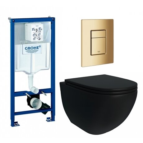 Хотите сэкономить время на поиске совместимых компонентов для подвесного унитаза? Готовый комплект Grohe решает эту задачу — инсталляция, унитаз и кнопка смыва уже подобраны друг к другу. Установка занимает на 40% меньше времени, чем покупка элементов по отдельности. Три главных преимущества: - Безободковая чаша с каскадным сливом — вода омывает всю поверхность равномерно, не остается труднодоступных зон для очистки - Антивсплеск и антибактериальное покрытие — гигиеничность на уровне премиальной сантехники - Гарантия 5 лет от Grohe — немецкий производитель отвечает за надежность каждого компонента Комплект подходит для санузлов от 2 м². Габариты инсталляции: 113×50×49,5 см — стандартный размер для типовых квартир и загородных домов. Монтажная глубина всего 23 см, что экономит пространство в небольших помещениях. Кому подойдет этот комплект: владельцам квартир на этапе ремонта, застройщикам, которые ищут готовое решение для нескольких санузлов, дизайнерам интерьеров в современном стиле. Технические характеристики: - Черная матовая чаша из фарфора — не желтеет со временем, легко моется обычными средствами - Сиденье из дюропласта с микролифтом — опускается бесшумно, быстро снимается для уборки - Пневматическая кнопка цвета золото — управление двумя режимами слива, долговечнее механических аналогов - Крепление в пол и капитальную стену — выдерживает нагрузку до 400 кг - Подвод воды сбоку или сзади бачка — адаптируется под существующую разводку - Диаметр слива 9 см, переходник 11 см — совместимость со стандартной канализацией Вес комплекта 43 кг — учитывайте при доставке на этаж. Сборка не требуется: инсталляция поставляется в собранном виде, унитаз и кнопка устанавливаются после чистовой отделки. Уход: протирайте чашу мягкой тканью с неабразивным средством 1 раз в неделю. Антибактериальное покрытие сохраняет свойства весь срок эксплуатации.Отзывы
