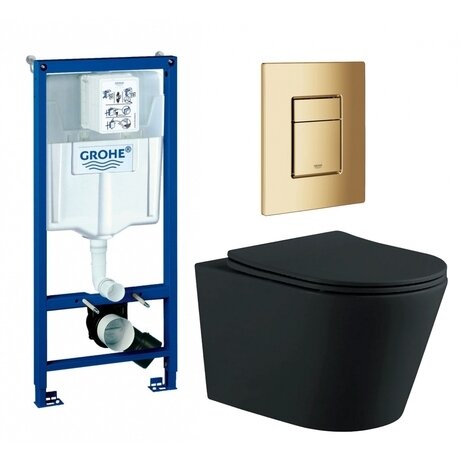 Комплект 3 в 1 Grohe Rapid SL: немецкая инсталляция с безободковым унитазом и кнопкой золотого цвета