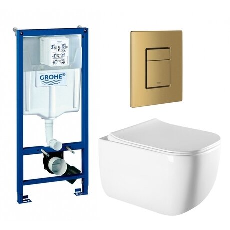 Комплект 3 в 1 инсталляция Rapid SL: немецкая инсталляция Grohe с подвесным унитазом и кнопкой золотого цвета