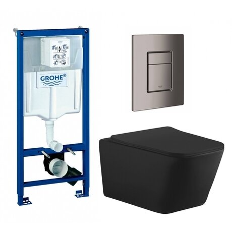 Хотите установить подвесной унитаз, но не знаете, что именно купить? Этот комплект решает проблему — в него уже входит инсталляция Grohe, черная чаша и кнопка смыва. Собрать санузел можно за один день, не докупая комплектующие. Три главных преимущества: - Безободковая чаша — легко мыть, не нужно чистить труднодоступные места под ободком - Антигрязевое покрытие — меньше налета, дольше сохраняет чистоту между уборками - Сиденье с микролифтом — опускается плавно и бесшумно, не разбудит домашних ночью Комплект подходит для санузлов от 4 м². Инсталляция занимает всего 50×23 см в нише — поместится даже в узком помещении. Монтажная высота 113 см — стандарт для большинства квартир. Чаша черная, матовая — на ней не видны разводы от воды. Форма прямоугольная, размер 55 см в глубину. Подойдет для семьи с детьми: высота от пола 30,5 см, ребенку будет удобно. Технические характеристики: - Каскадный слив — вода распределяется равномерно по всей чаше, смывает с первого раза - Пневматическая кнопка — нажимается легко, работает тихо - Два режима смыва — экономит до 30% воды в год - Сиденье из дюропласта — не желтеет, выдерживает удары, быстро снимается для чистки - Крепление в пол и стену — выдерживает нагрузку до 400 кг Подвод воды сбоку или сзади — подключается к любой разводке. Выпуск горизонтальный, стандартный для большинства квартир. Гарантия 5 лет — производитель уверен в надежности конструкции. Комплект приходит в сборе, сантехнику нужно только установить.Отзывы
