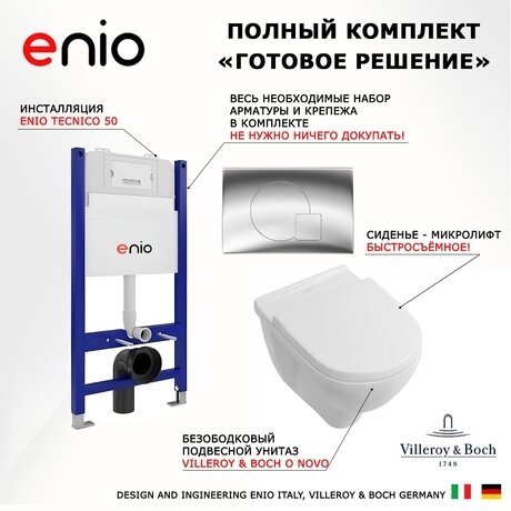 Комплект 3 в 1 инсталляция Enio Tecnico: готовое решение для санузла от 4 м²