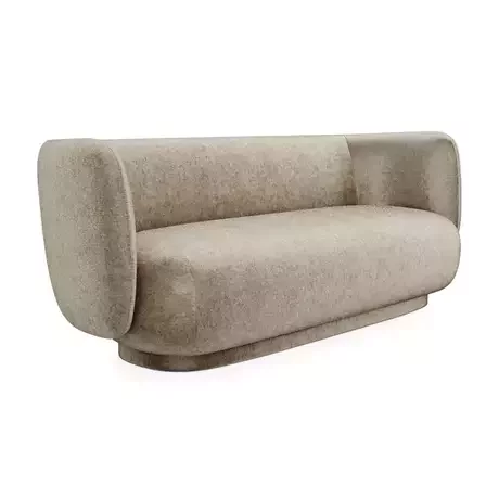 Диван идеально подойдет для гостиных в скандинавском или современном стиле площадью от 16 квадратных метров. Особенно оценят модель ценители минимализма и необычных форм в интерьере. Светло-коричневая обивка из букле не только приятна на ощупь, но и практична в повседневном использовании — материал устойчив к истиранию и сохраняет привлекательный вид даже при интенсивной эксплуатации.Технические особенности: